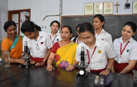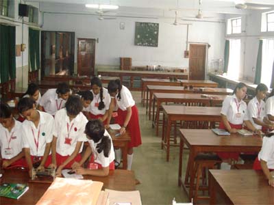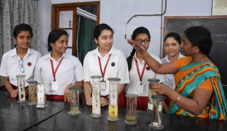 An efficient Biology lab with a number of specimens according to different phylum, permanent slides, three-dimensional models, charts and reagent shelves is present in the school. The students, in groups of a minimum of 35, can perform the corresponding experiments under the knowledgeable guidance of the Biology teacher and the lab assistant, and make their theoretical lessons all the more fruitful with hands-on experiment.